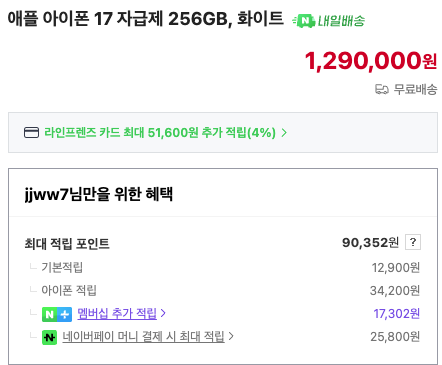- 혜택: 멤버십 플러스 적립 90,352원