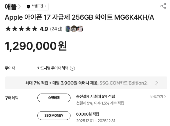 SSG닷컴은 조건만 맞으면 체감가가 확 내려가서, “자급제 최저가”를 노린다면 가장 유력한 선택지입니다.