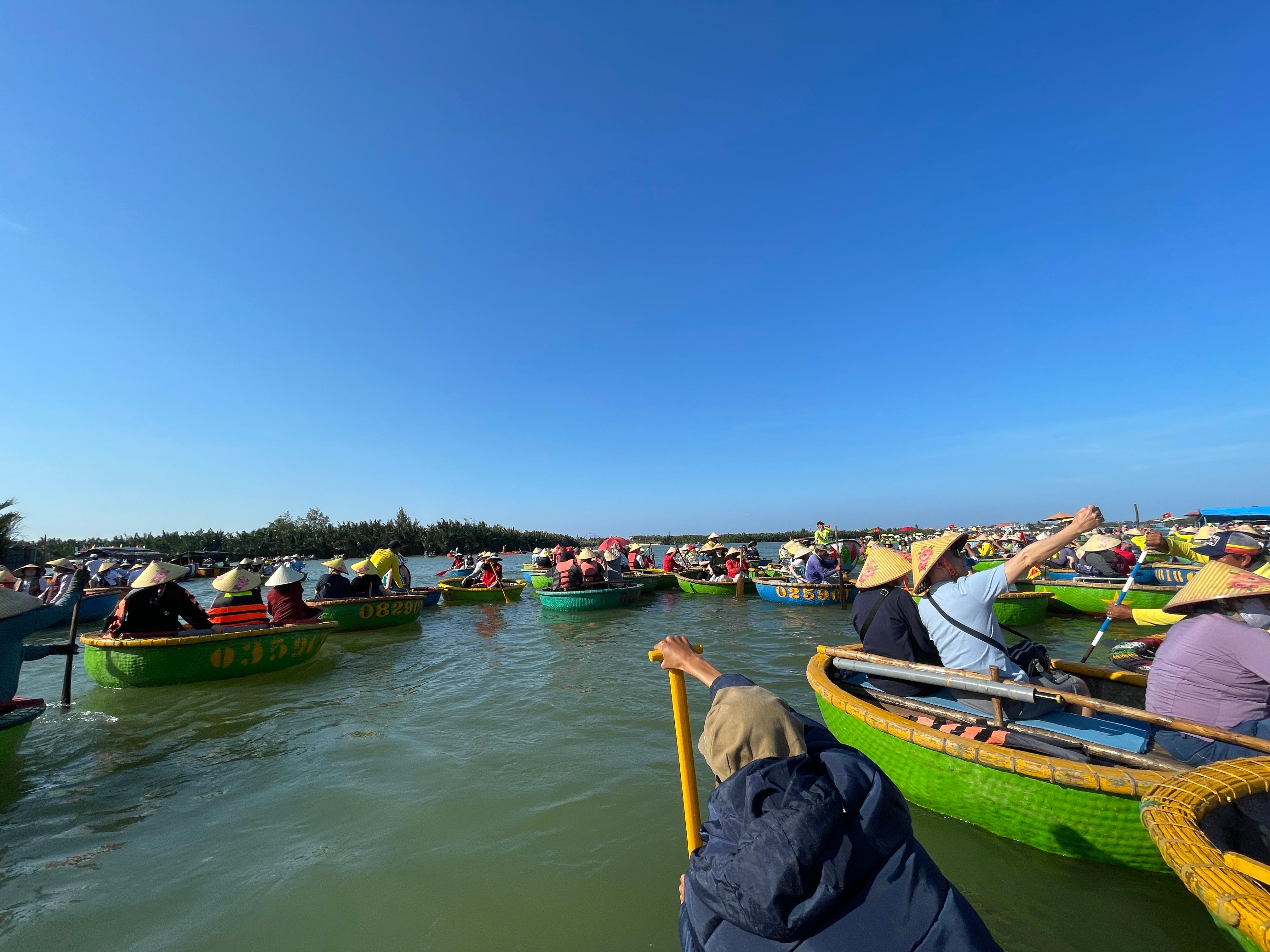 배를 한 번 타는 건 재미있는 경험인데, 좁은 곳을 지나 넓은 곳으로 나오면 커다란 스피커가 달린 배 주위로 몰려들어 거기 머무르며 한국의 트로트를 들을 수 있습니다.
