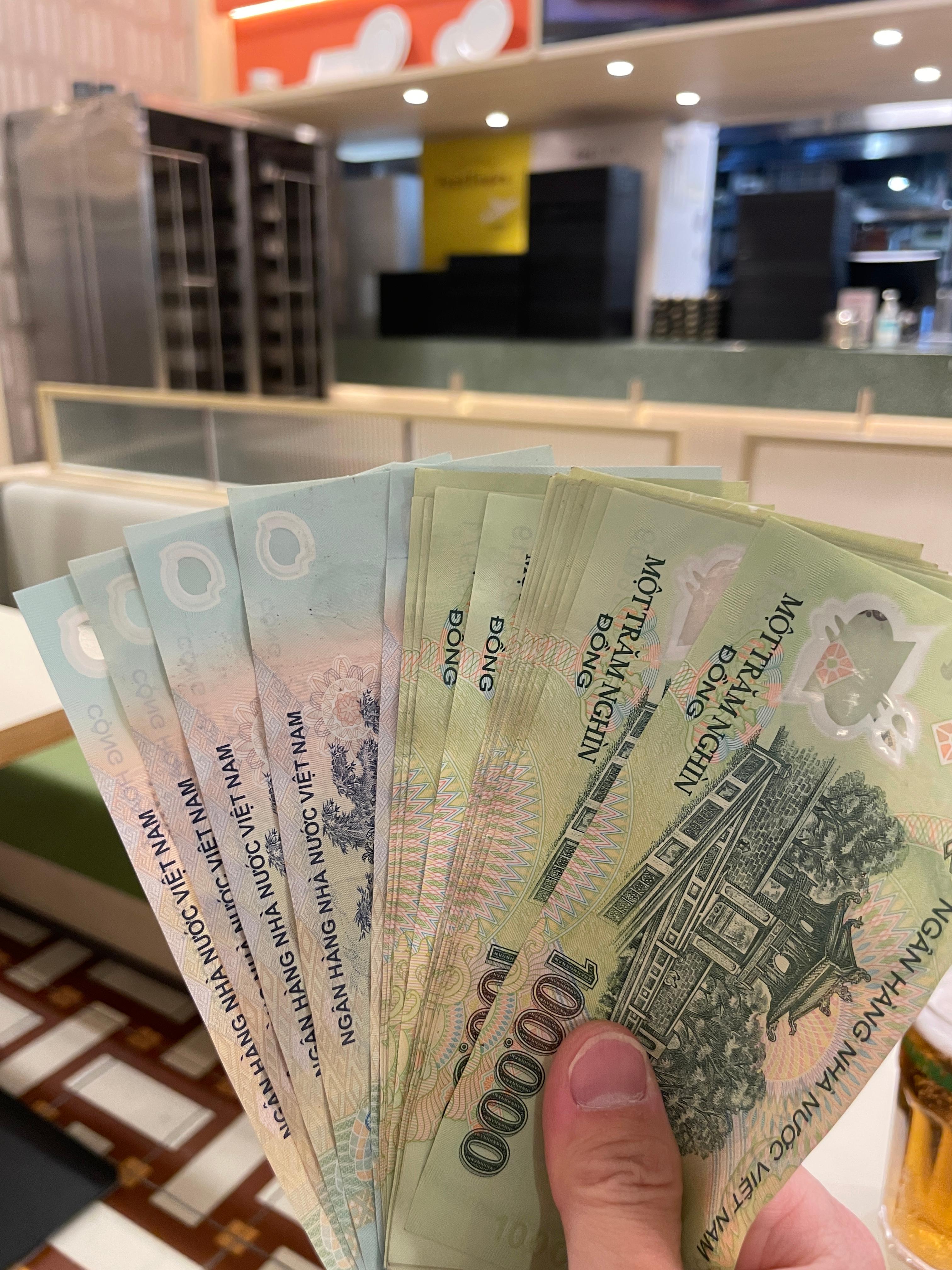 찾아보니 베트남 현지 금은방에서 환전을 한국의 5만 원권으로 한다고 하는데, 시내로 나갈지 안 나갈지 몰라 그냥 인천공항에서 환전을 해서 나갑니다. 30만 원 정도.